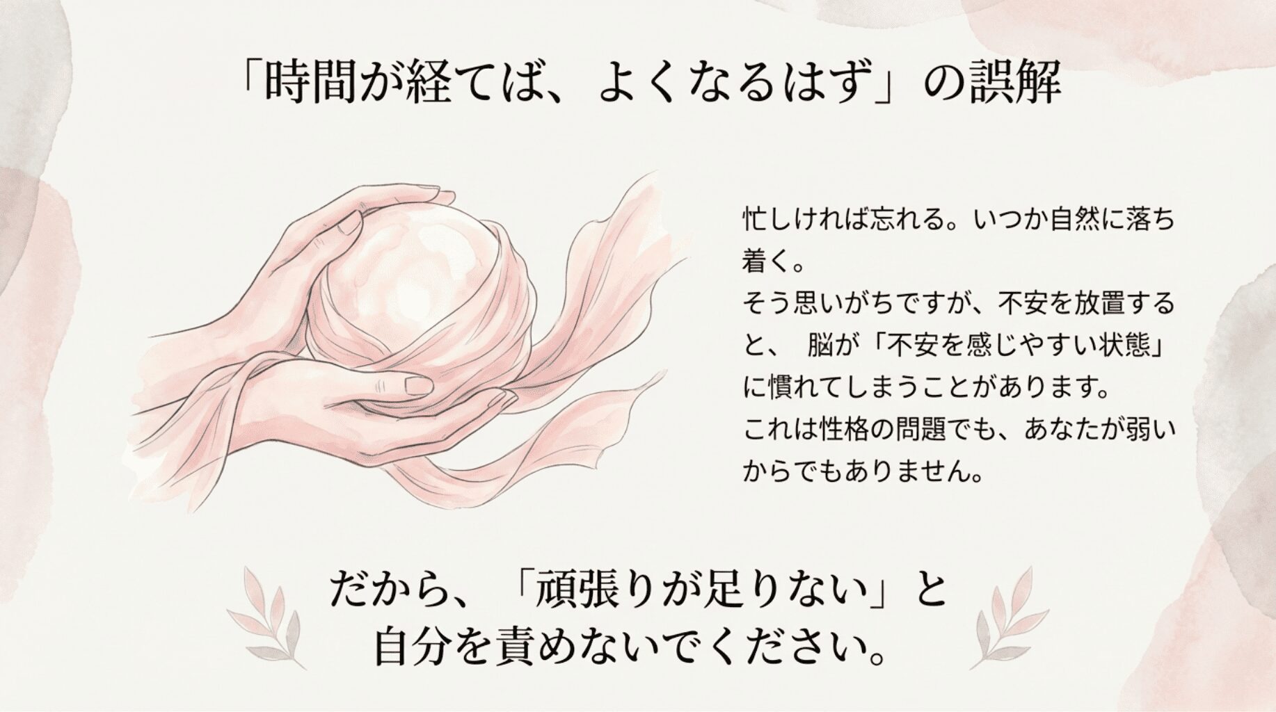 不安は、心の状態を表すため、いつか自然によくなるだろう。というのは、よくある声です。