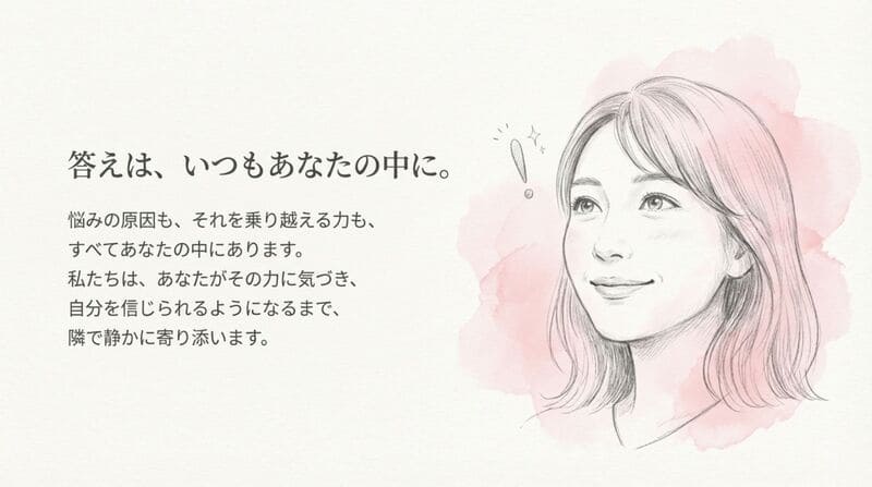 今のあなたにとって、ちょうどいい進め方を一緒に探し、必要なところだけ少しずつ整えていきます。