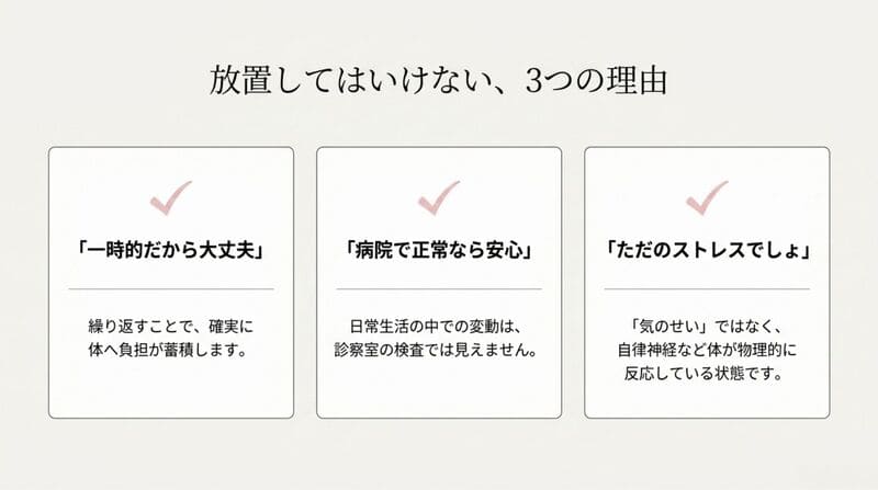 つまり、「気のせい」ではなく、体がしっかりと反応している状態なのです。