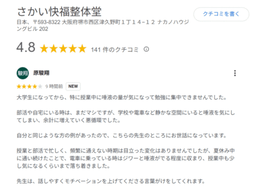 他人からどう思われているのかを気にしてしまい、その意識によって唾液が分泌される傾向があるため、そのあたりの考え方(認知)を修正しました。
